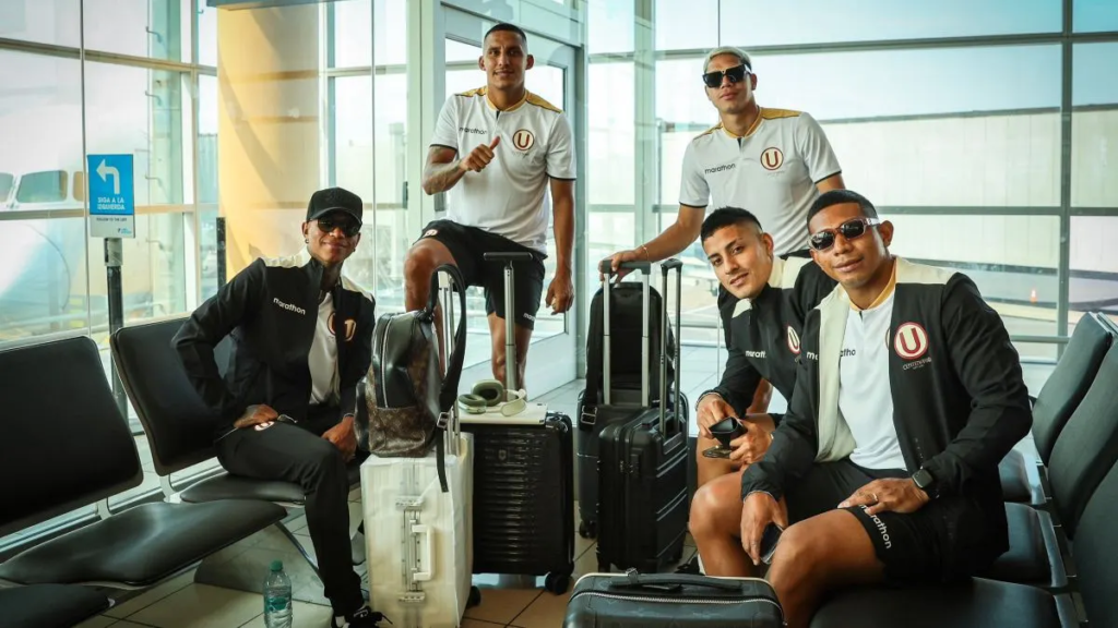 A través de sus redes sociales, la ‘U’ publicó fotos de sus jugadores en el aeropuerto Jorge Chávez previo a su viaje a Colombia. «Próximo destino, Colombia», dice el mensaje del cuadro crema.