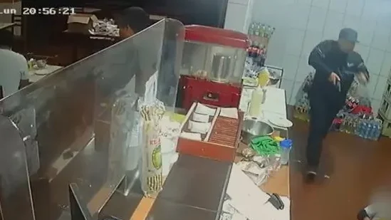 En el video se puede observar cómo dos hombres ingresan al restaurante, luego uno de los sujetos, vestido de negro y con una gorra, aborda a un cliente que se encontraba en una mesa y le quita sus pertenencias.