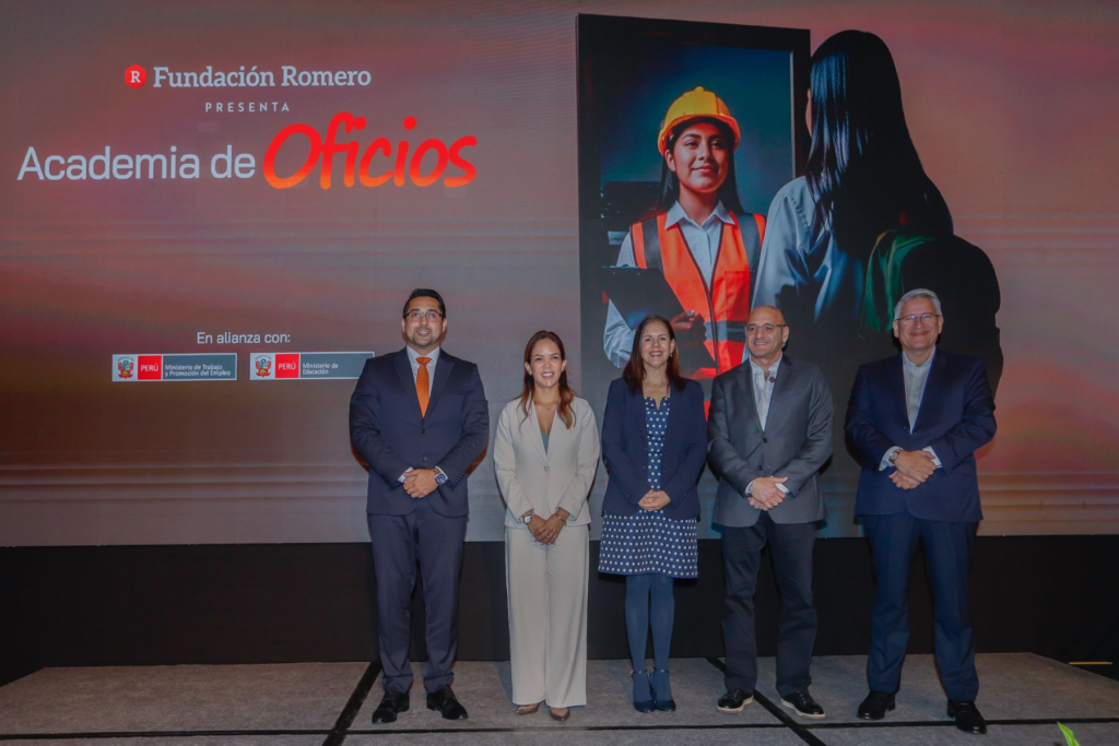En la ceremonia de presentación de la iniciativa Academia de Oficios también participaron el presidente de la Fundación Romero, Dionisio Romero Paoletti; la rectora de la UPC, Milagros Morgan, y el director ejecutivo de Fundación Romero, Martín Pérez.