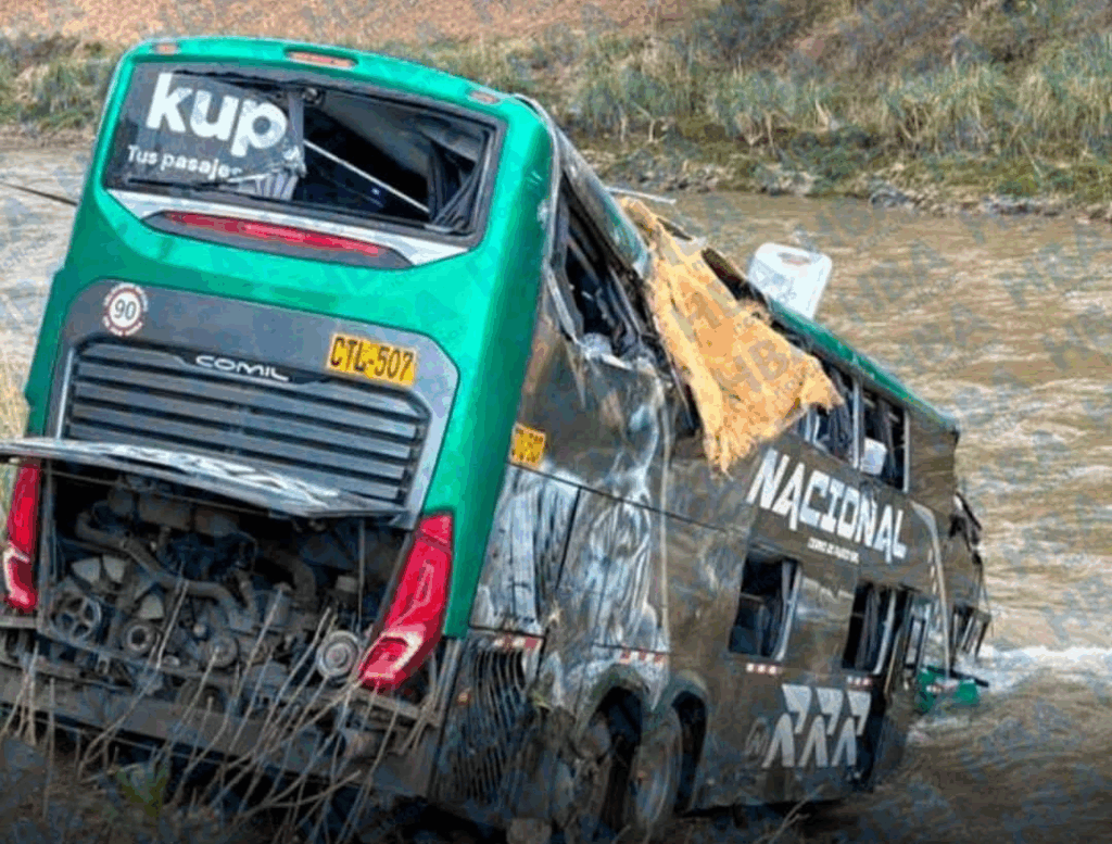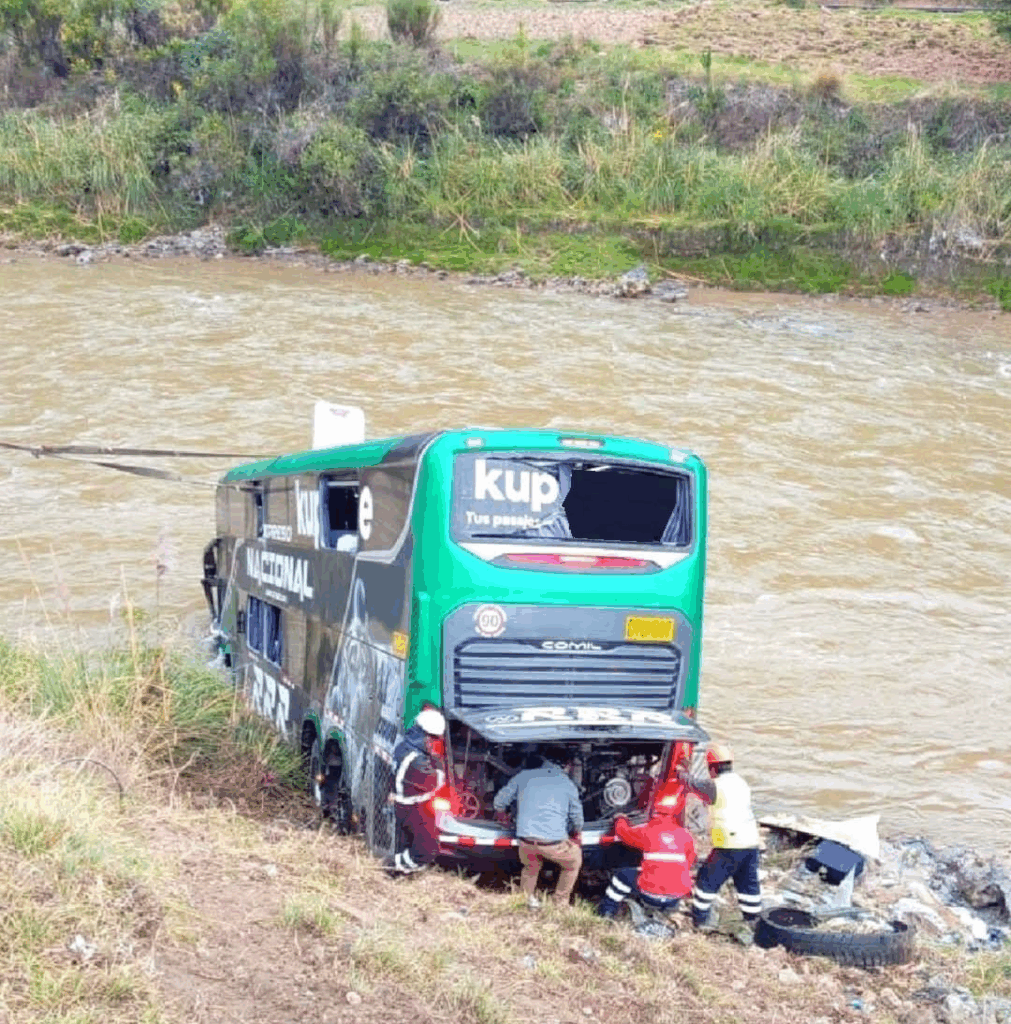 La magnitud del accidente dejó la unidad interprovincial severamente dañada, con parte de su estructura sumergida en el río. Las autoridades investigan si el auto invadió el carril contrario al ingresar a la curva, generando el choque frontal que originó el despiste.